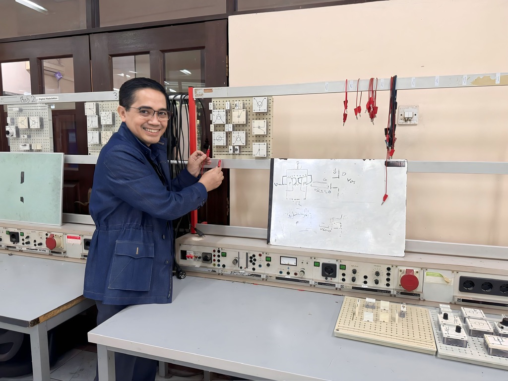 Alongside the exhibition, we conducted a tour of the Workshop and the Electrical Engineering laboratories, accompanied among others by the HME Chair, M Iqbal Maulana. This included, of course, the Electronics Lab, where Sigit Shalako and I once served as lab assistants. The lab has since moved location and now operates with far more advanced, high-precision experimental modules.